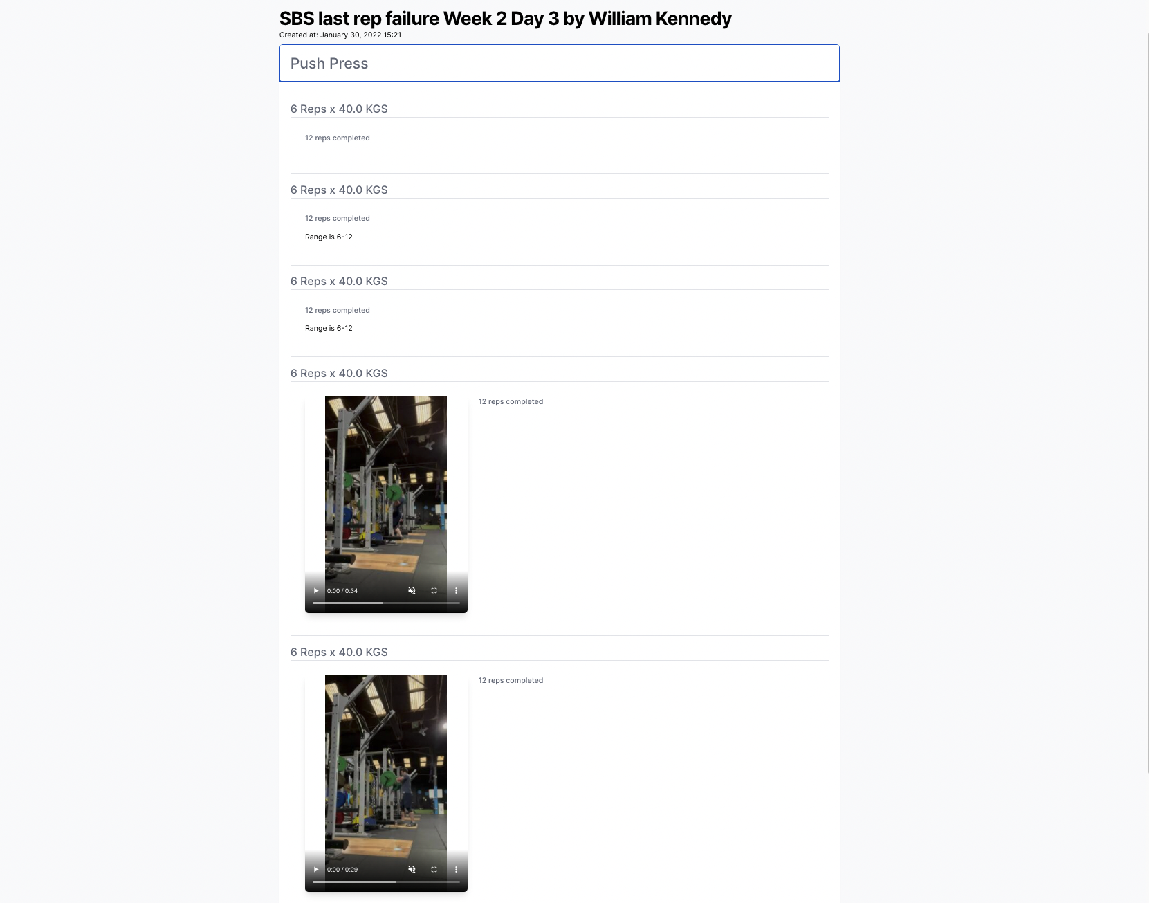 Record your workout, add videos to each set and easily send to your coach. They can give you feedback. All without them having to create an account.
